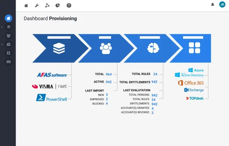 HelloID Provisioning establishes a connection between the HR system and user accounts in the network. This module automates the full onboarding, transitioning and offboarding process, ensuring swift, error-free and efficient handling of changes.
